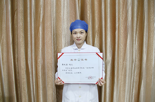 介入科护士长黄秋香获得2021年上海市社会医疗机构“优秀护理工作者”称号及证书,郭院长表示:荣誉的背后离不开辛勤的努力,这不仅仅是个人荣誉,也是医院的荣誉。