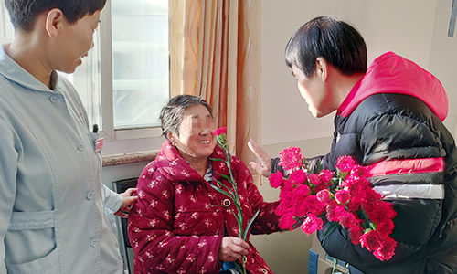 不仅仅是住院患者,只要是来院的患者及家属,都会赠送每人一束康乃馨,大家在接到鲜花的那一瞬间,都露出来温暖的笑容。