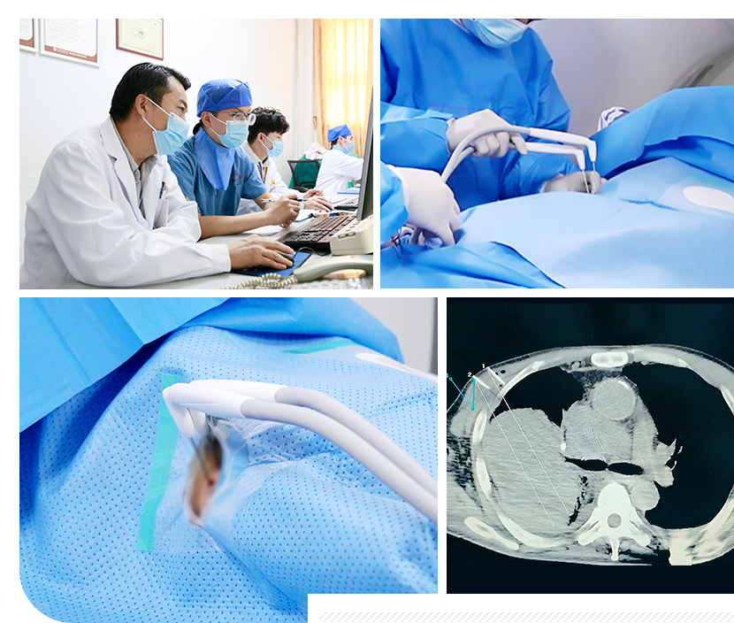 • 微创介入治疗是一种介于外科和内科之间的新兴治疗方法,在高端的数字减影血管造影机(DSA)、CT、核磁共振、超声等设备精确引导下,无需开刀,在皮肤上做直径几毫米大小的微小通道,经人体原有的管道,用穿刺针、导丝、导管、支架等精密器械对肿瘤病灶局部进行微创治疗。